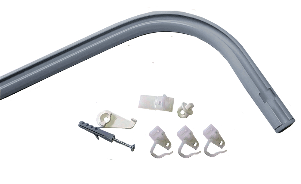 Wir liefern die Gardinenschiene aus Aluminium bis zu 6 m Länge ohne Bögen und bis zu 4 m Länge mit Bögen.
