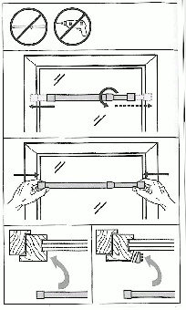 Stange mit der Gummistopfen ansetzen, zusammendrücken, zweite Gummistopfen gegenüber ansetzen, loslassen.