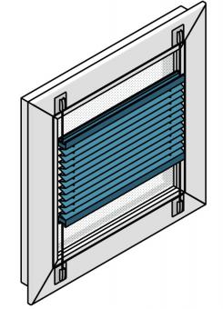Universal Klebeplatten mit Spannschuh für Plissee Faltstore verspannt zur Montage ohne Bohren auf dem Rahmen von Kunststofffenstern.