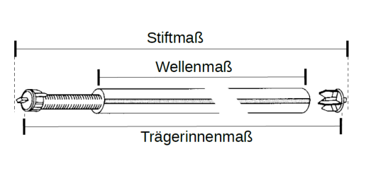 Stiftmaß = Wellenmaß + 2,5 cm