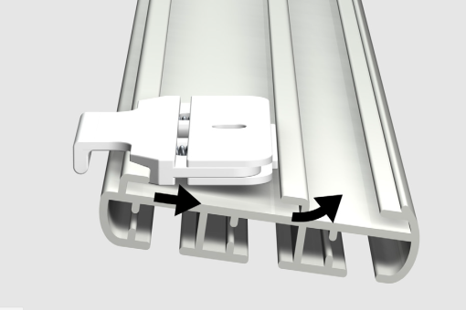Aufteilung der einzelnen Behänge. Farblich passende Endkappen runden das System ab. Die Schiene passt optimal mit unseren Paneelwagen für