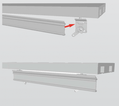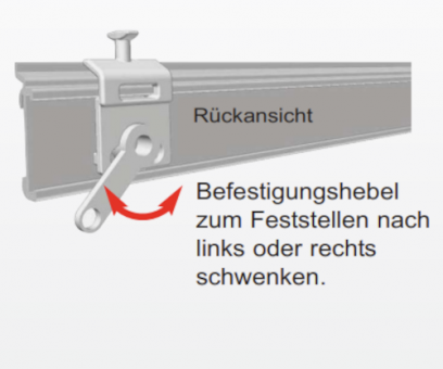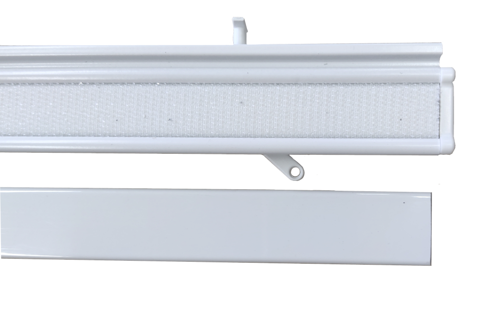Das Set besteht aus dem Aluminium-Klettprofil, einem Aluminium Fallstab (5 mm schmaler), 2 Drehgleiter und Endkappen aus Kunststoff für das Klettprofil.