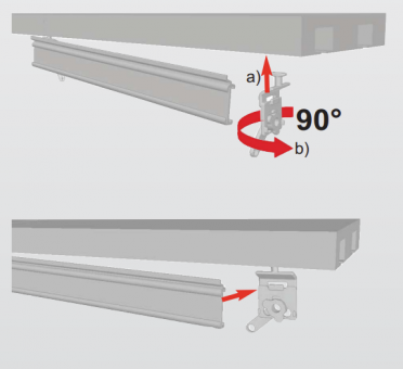 Paneelwagen weiss Universal aus Aluminium mit Drehgleiter für Schiebevorhang, Flächenvorhang, Schiebegardine.